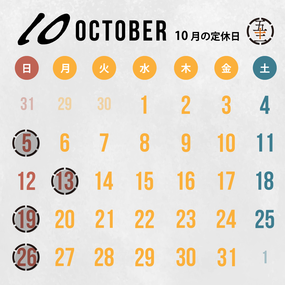 52-ごじゆうに-お知らせNews View all 一覧に戻る 10月の営業のお知らせDate2025.10.01Categoryご案内いつもありがとうございます。10月の営業日のご案内です。5日13日19日26日みなさまのお越しをお待ちしております!カレンダークリックで拡大します 52-ごじゆうに->お知らせ>10月の営業のお知らせ